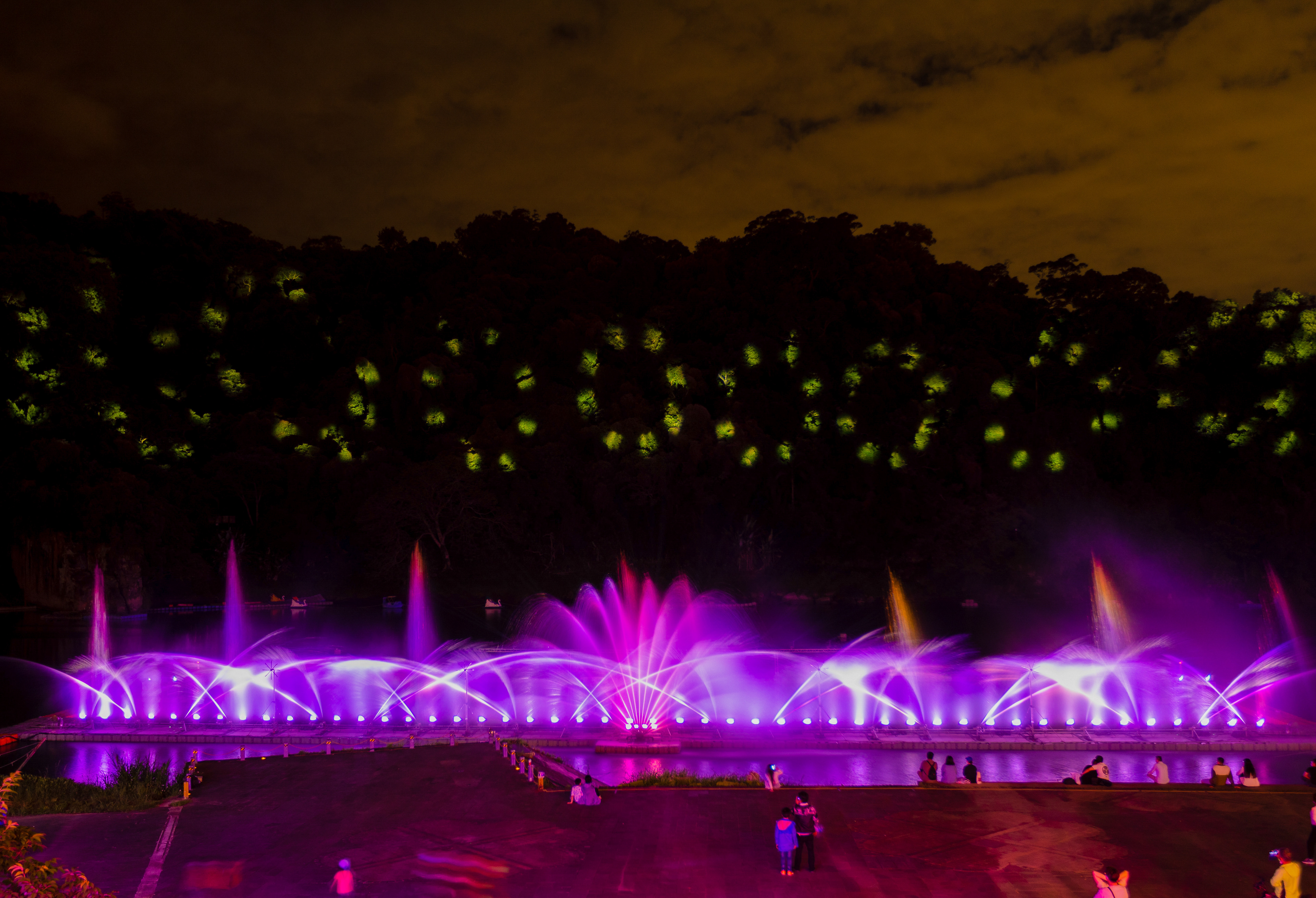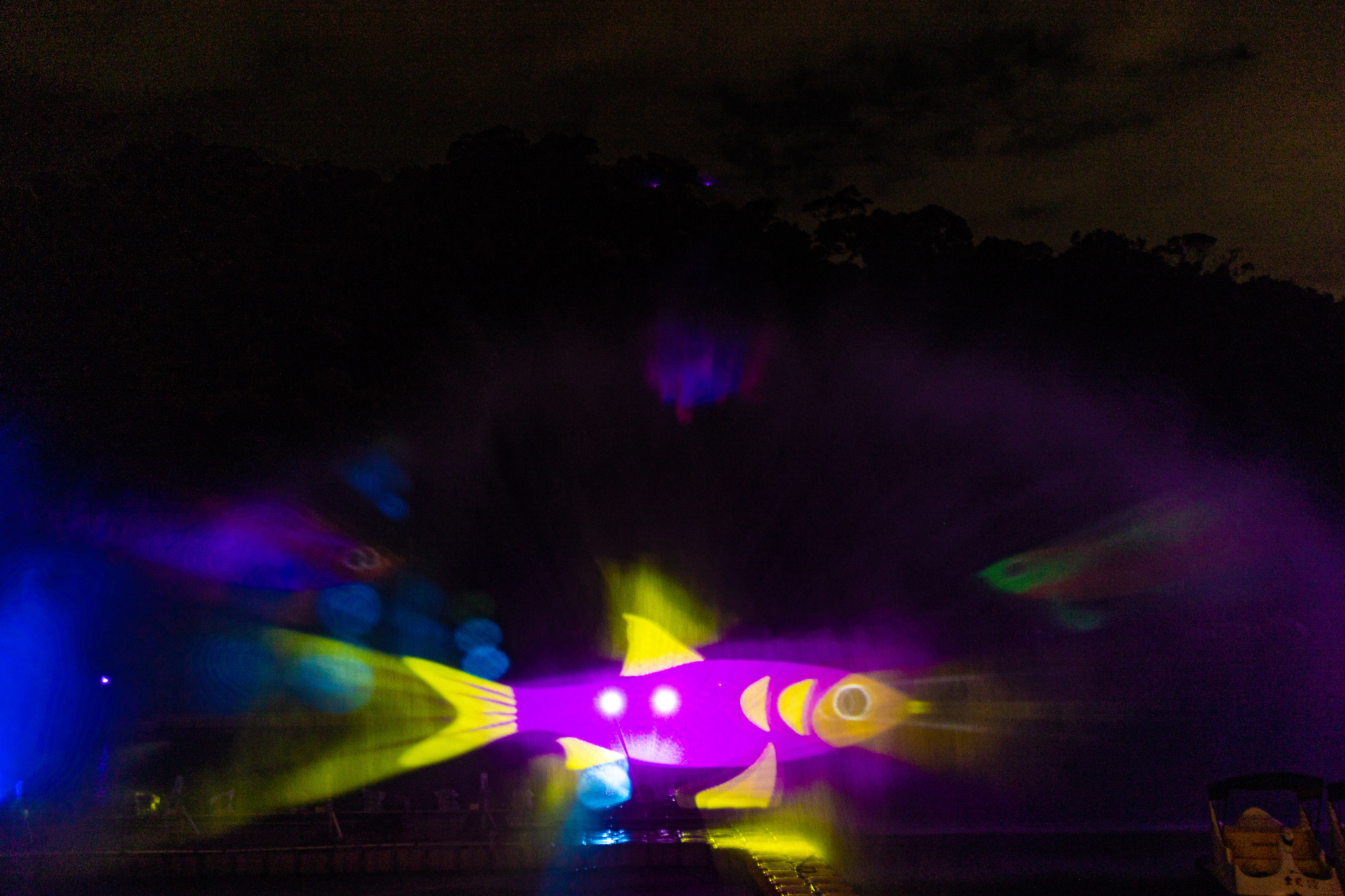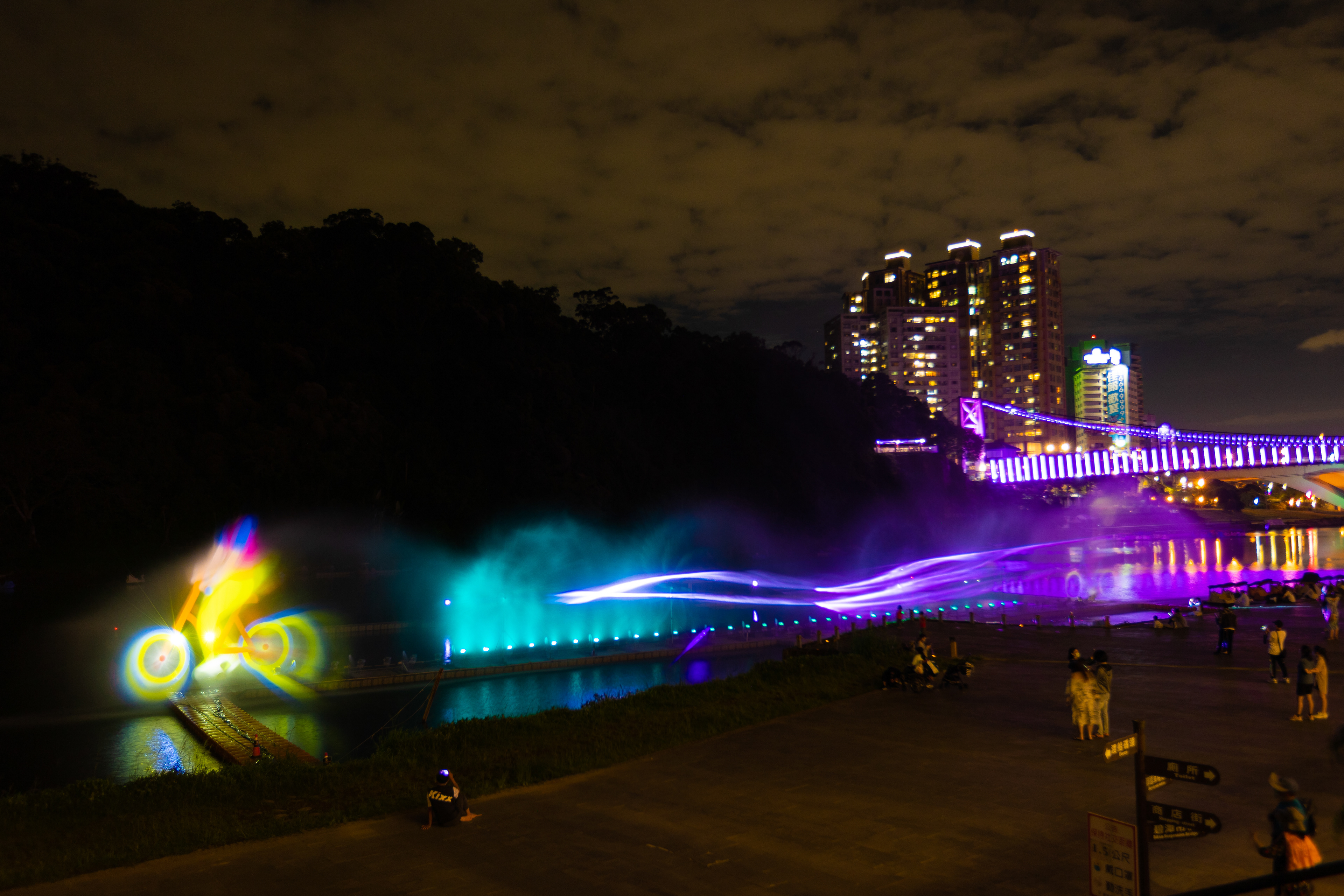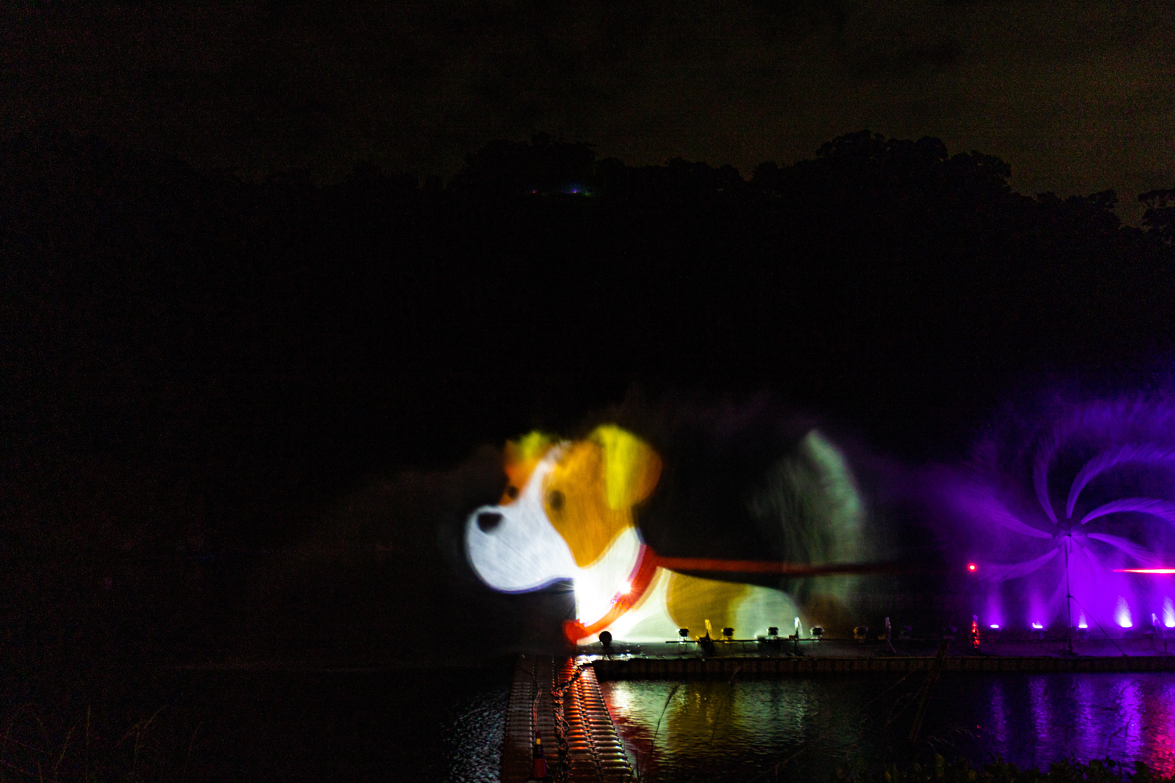 全新雙水幕互動演出,可看見在地的生態物種將以俏皮的模樣登場, 穿梭於投影之中,闡述新店溪流域的生態環境, 同時也能看見許多碧潭著名旅遊地標 In 2022,the new interactive performance with double water screens, you can see that the local ecological species will appear in a playful appearance, shuttle through the projection, explain the ecological environment of the Xindianxi River Basin, and at the same time, you can see many famous tourist landmarks in Bitan.