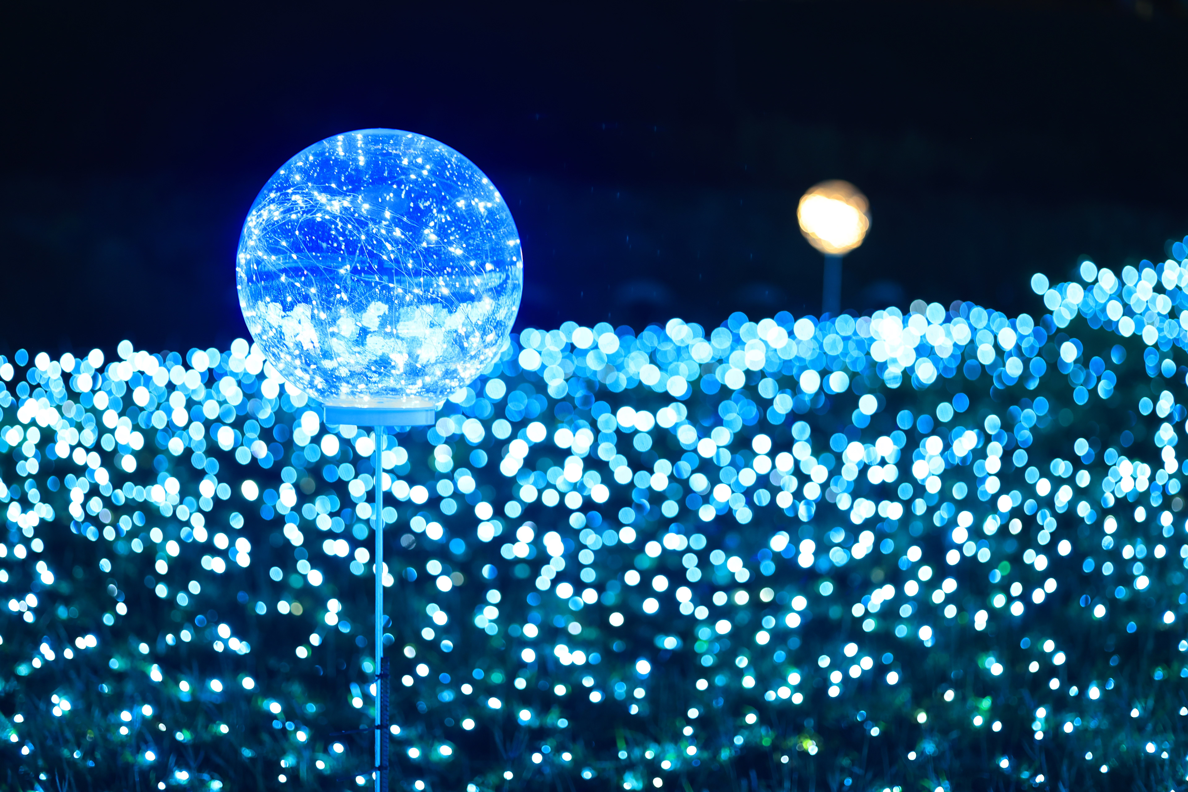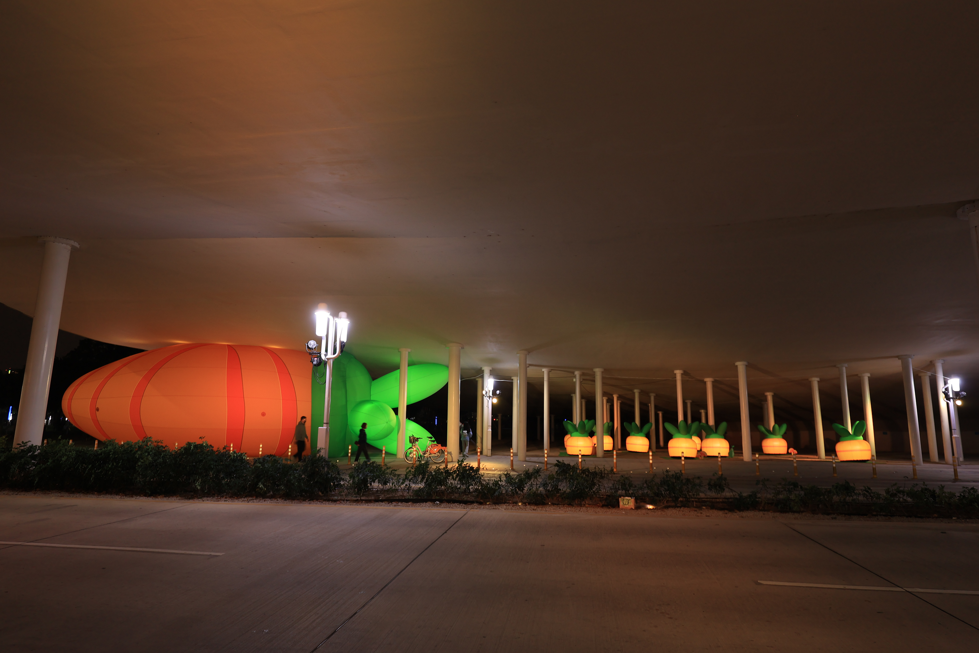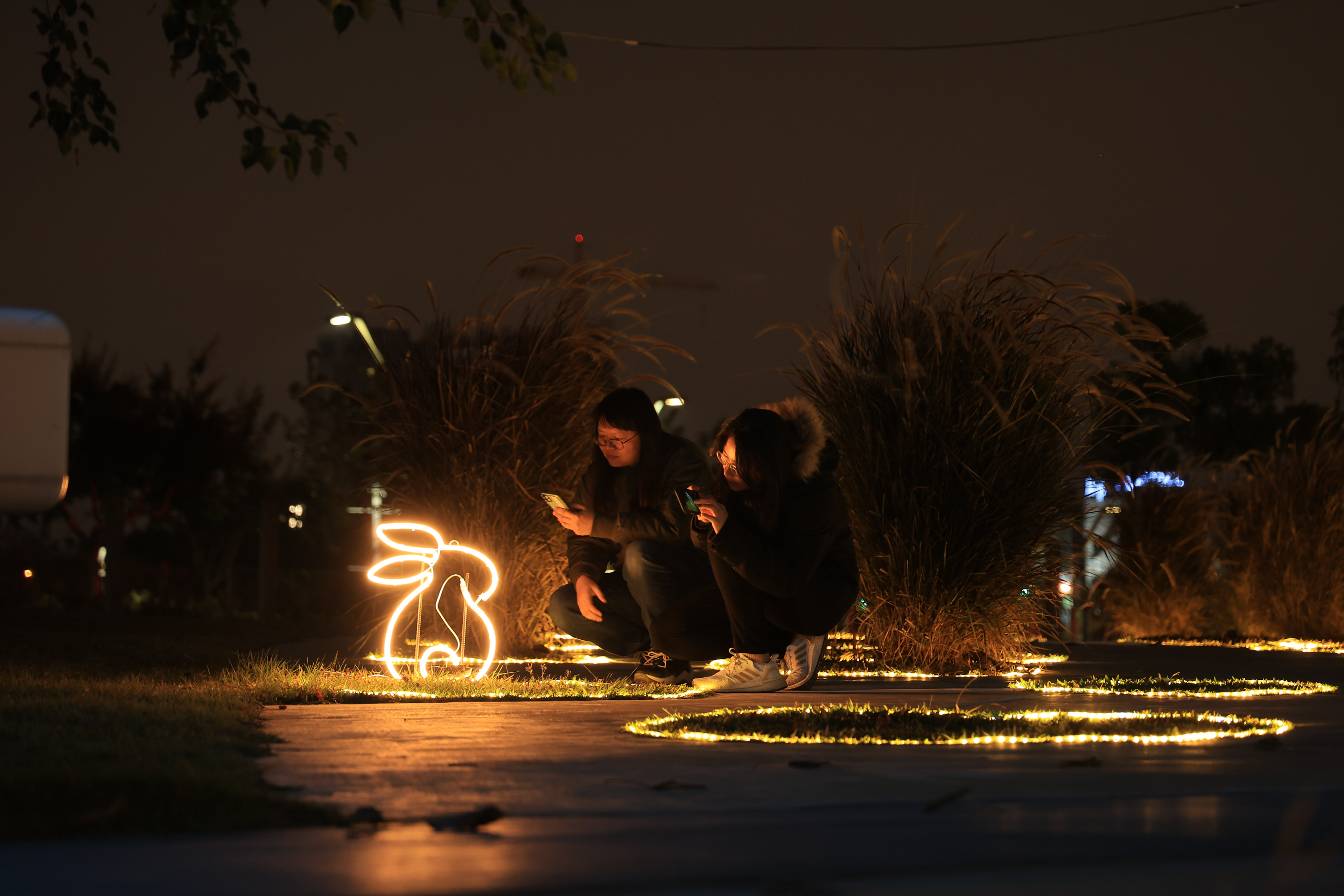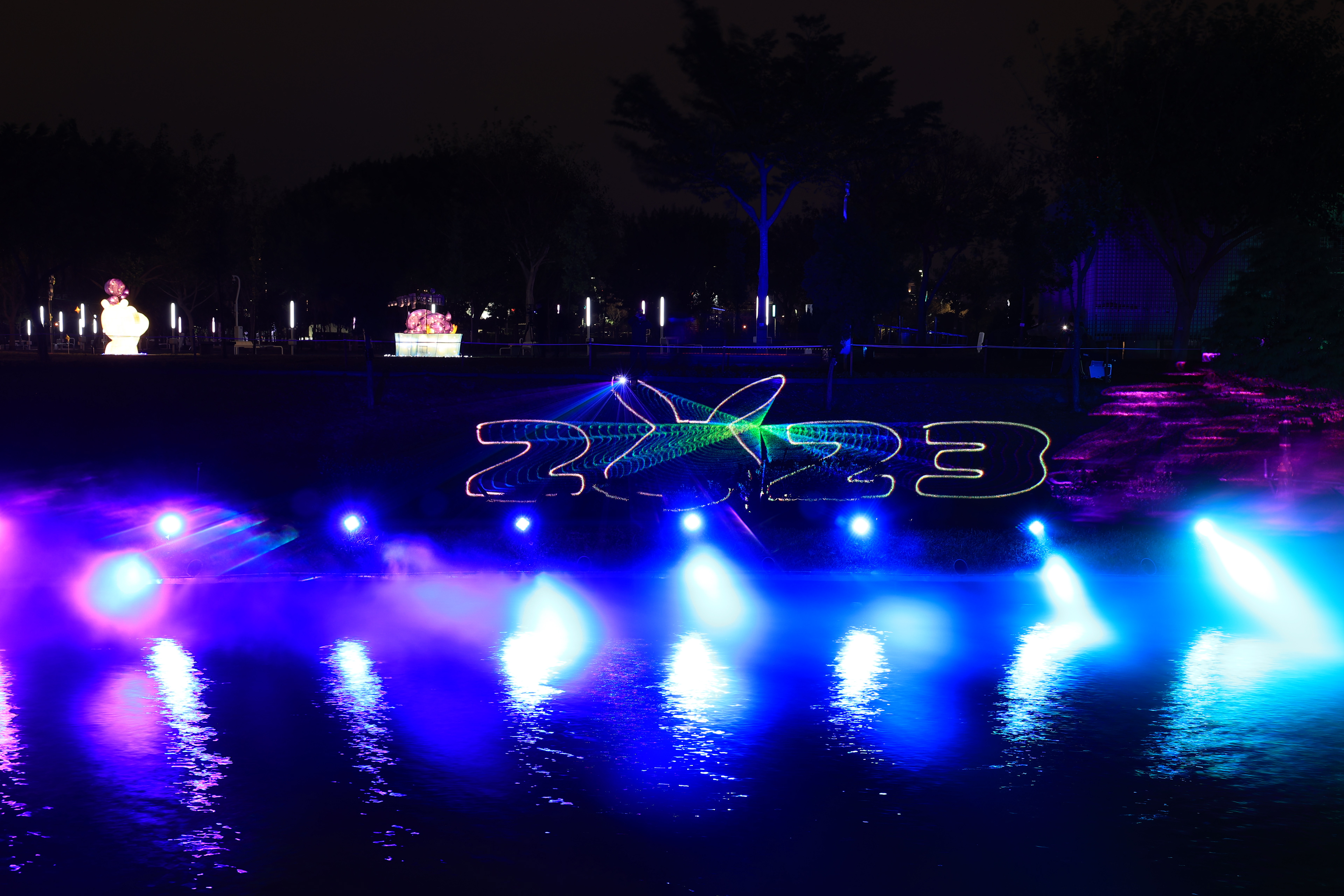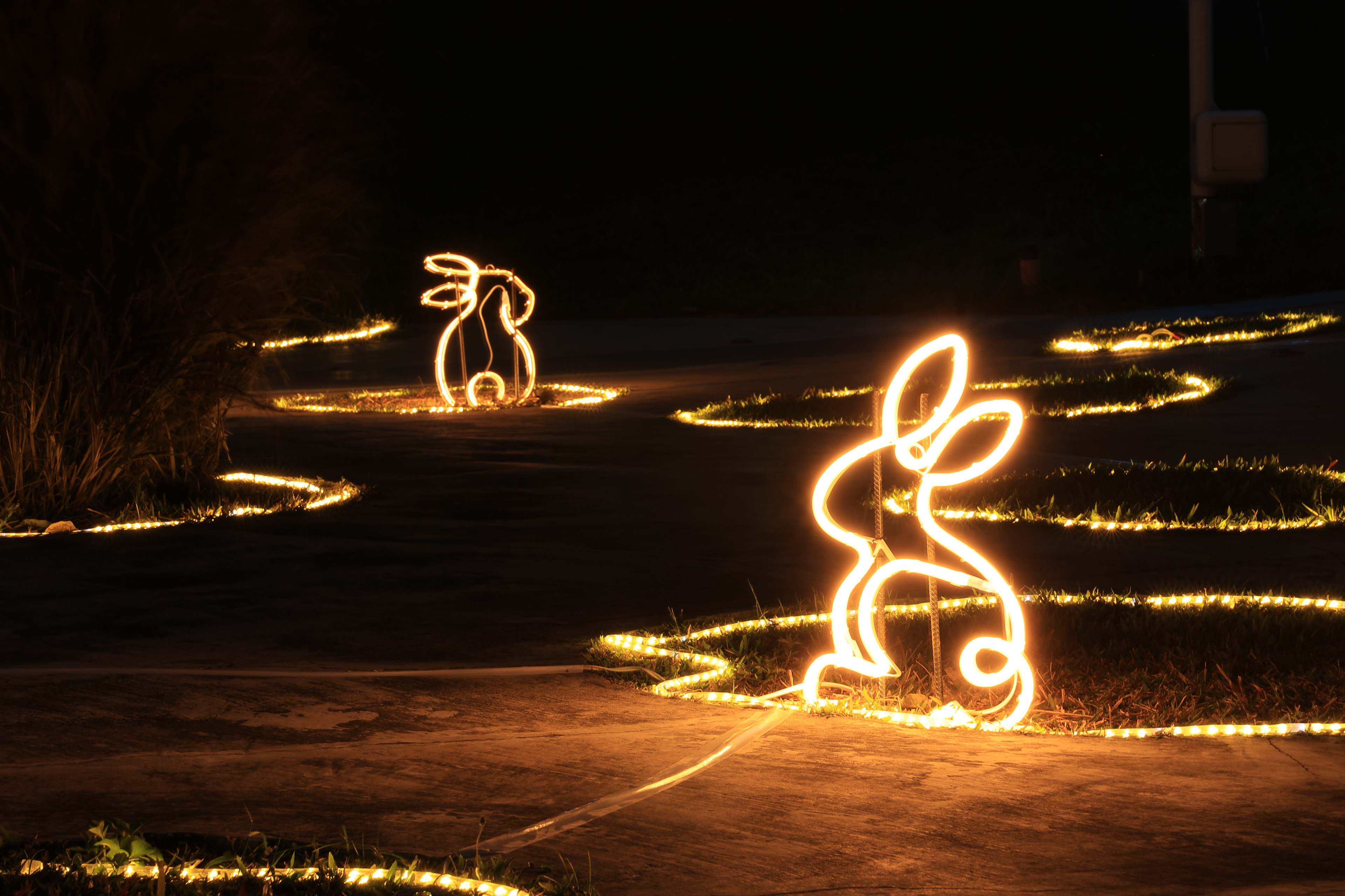 主燈「幸福臺中 Happy兔」,結合傳統紮燈工藝、科技藝術手法, 打造全臺規模最大的水上動態主燈! 主燈群以水上星球為中心,360°環景投影,搭配兩旁建築群高低錯落,隱約可見知名的中臺灣電影中心、國家歌劇院等建築,透過燈光色彩的層次烘托,象徵幸福臺中的城市意象 主燈秀「Happy兔」從星球內升起,靈活耳朵上下擺動,曲音高揚時,「Happy兔」昂首向上, 彷彿帶領大家邁向低碳、宜居、美好未來的城市光景。 6大主題燈區、逾30座燈組,以環境友善議題結合場域特色, 打造出專屬中央公園地形地貌的璀璨燈區; 白天是大型裝置藝術公園,夜晚則搖身變成耀眼花燈樂園。 The main lantern, "Happy Rabbit of Happy Taichung," combines traditional lantern-making craftsmanship with technological artistry to create Taiwan's largest dynamic floating lantern. Centered around a water planet, the lantern features 360° panoramic projections. Surrounding buildings, with their varying heights, subtly reveal landmarks such as the Central Taiwan Film Center and the National Taichung Theater. The layered lighting enhances the cityscape, symbolizing the happiness of Taichung. In the main lantern show, "Happy Rabbit" rises from within the planet, its ears playfully moving up and down. As the music crescendos, "Happy Rabbit" lifts its head, as if leading everyone toward a low-carbon, livable, and bright future city. With six themed lighting areas and over 30 light installations, the display integrates eco-friendly themes with the unique features of the Central Park landscape. By day, it is a large-scale art installation park, and by night, it transforms into a dazzling lantern wonderland.